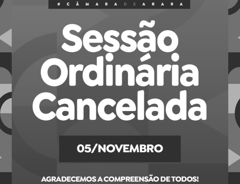 A câmara de Arara-PB informa a toda população que, em respeito aos recentes acontecimentos que entristeceram nossa comunidade, Sessão Ordinária prevista para ser realizada nesta quarta-feira, dia 5 de Novembro, foi cancelada.